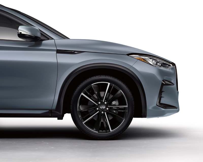Los rines del Infiniti QX50 Pure y Luxe son estándar, de 19 pulgadas, pintados en color plateado. En el caso del modelo Sport, son de 20 pulgadas, pintados en tono oscuro.