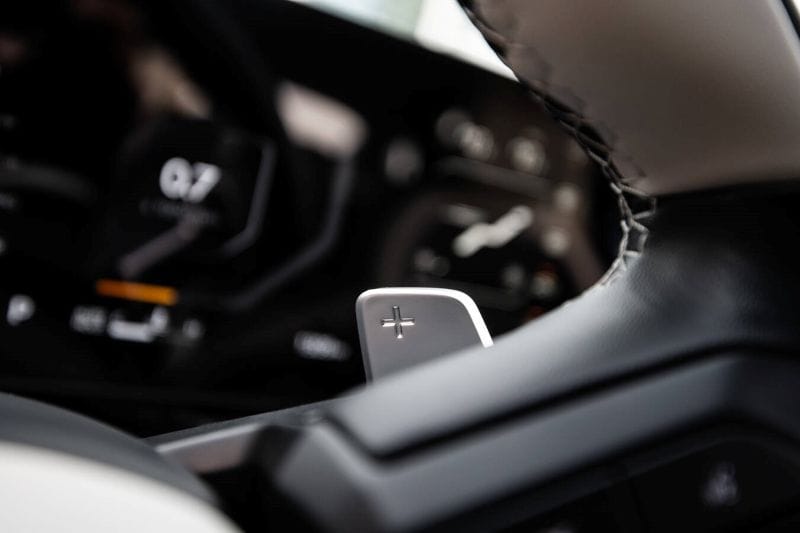 La tapicería en mi modelo de prueba era en SynTex (opcional, con el paquete GT-Line Premium). El volante -de tres radios, exclusivo del GT-Line)- estaba forrado en cuero y tenía levas para cambios.
