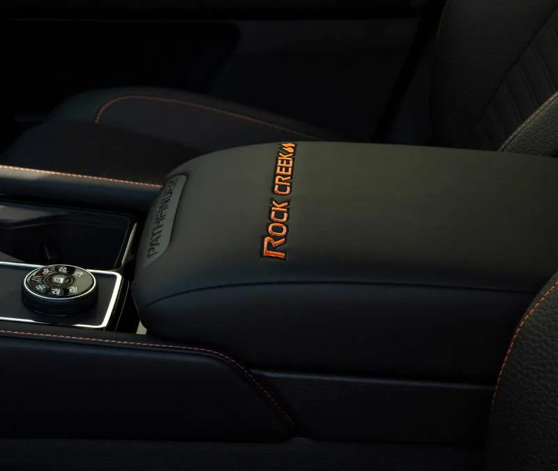 Los faros antiniebla LED, una parrilla de techo tubular, asientos tapizados en piel sintética específicos para esta versión y detalles de costura interior en color Rojo Lava, son también parte de las novedades para mantener al Pathfinder Rock Creek vigente y actual.