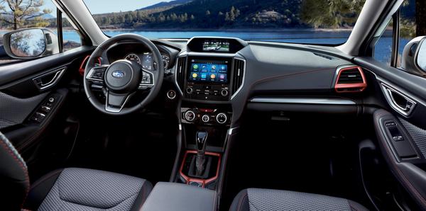 Al sentarnos frente al volante comenzamos a detallar algunos cambios. La consola central, por ejemplo, tiene nuevo look que resulta obvio al comparar la pantalla táctil, con gráficas más claras y un sistema que integra entretenimiento e información con mucha agilidad y sin requerir un manual de instrucciones. Los comandos son sencillos de operar y por primera vez el Subaru Forester incorpora Apple CarPlay y Android Auto -estándar- y cuenta con puertos USB tanto adelante como atrás, con lo que se pueden conectar y/o cargar varios aparatos al mismo tiempo.